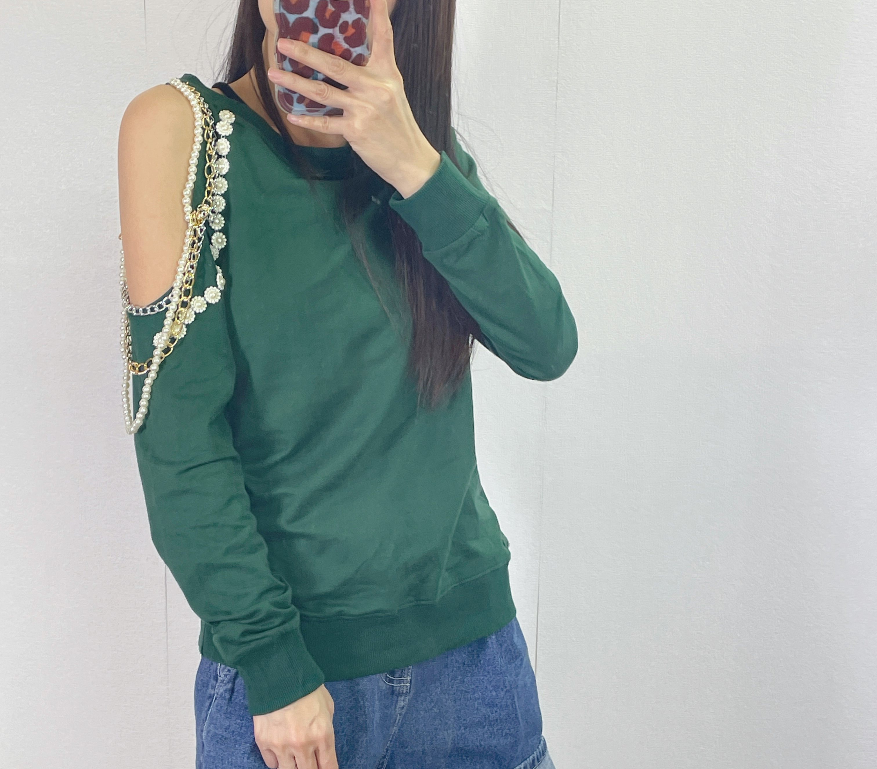 #10-2008 棉料單邊露膊釘珠tee