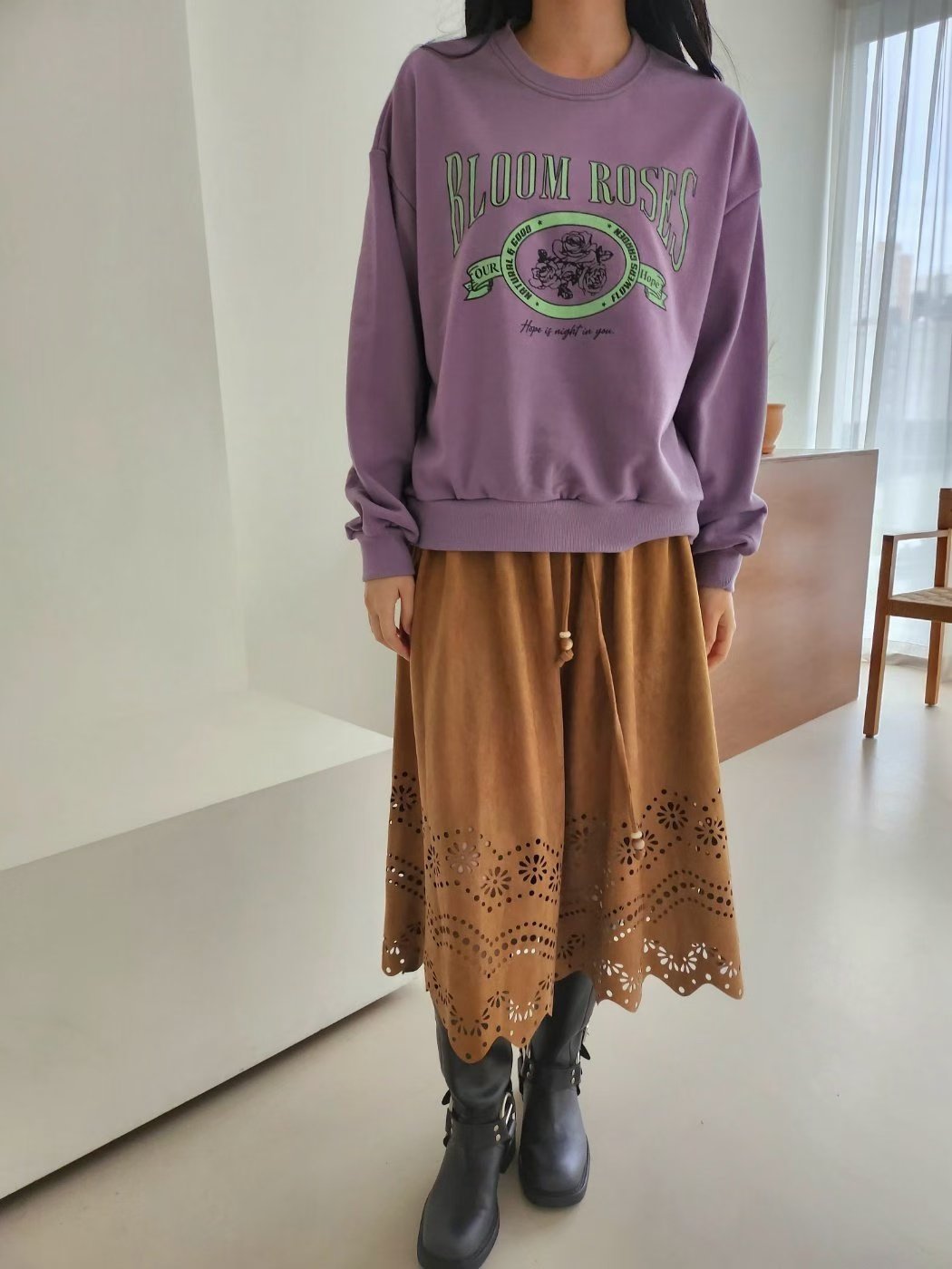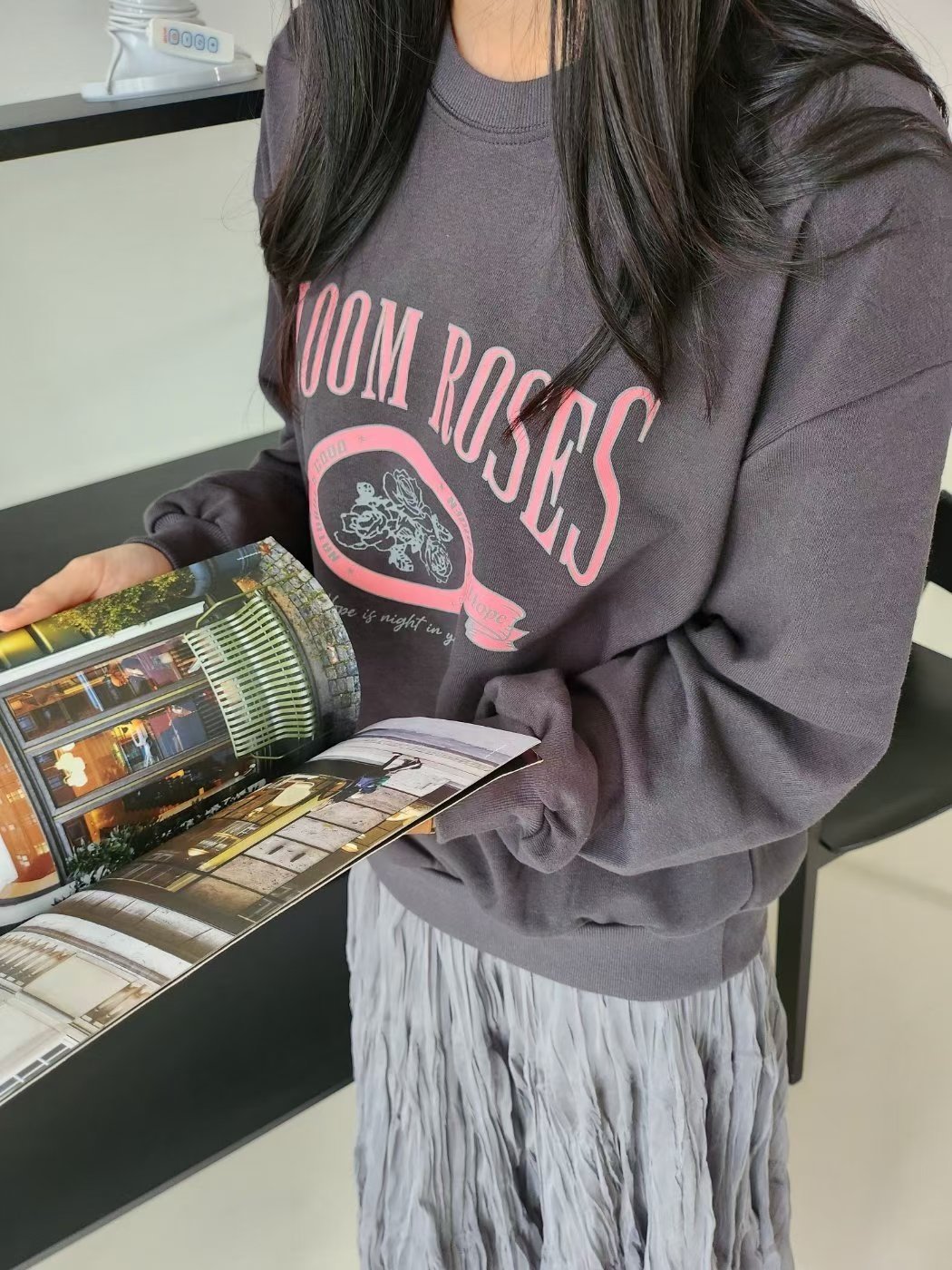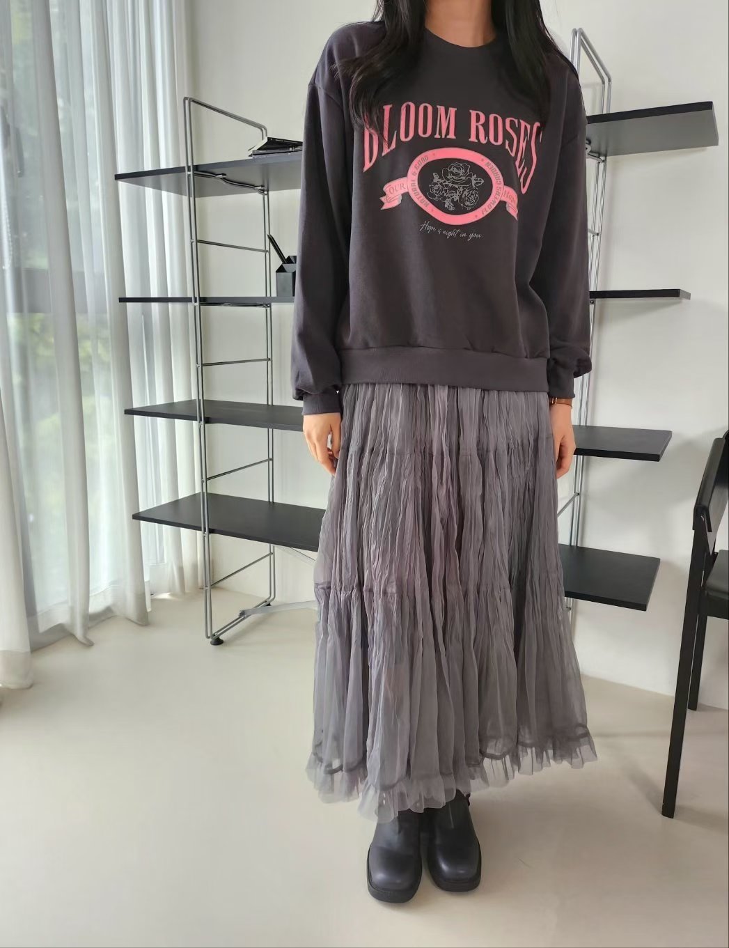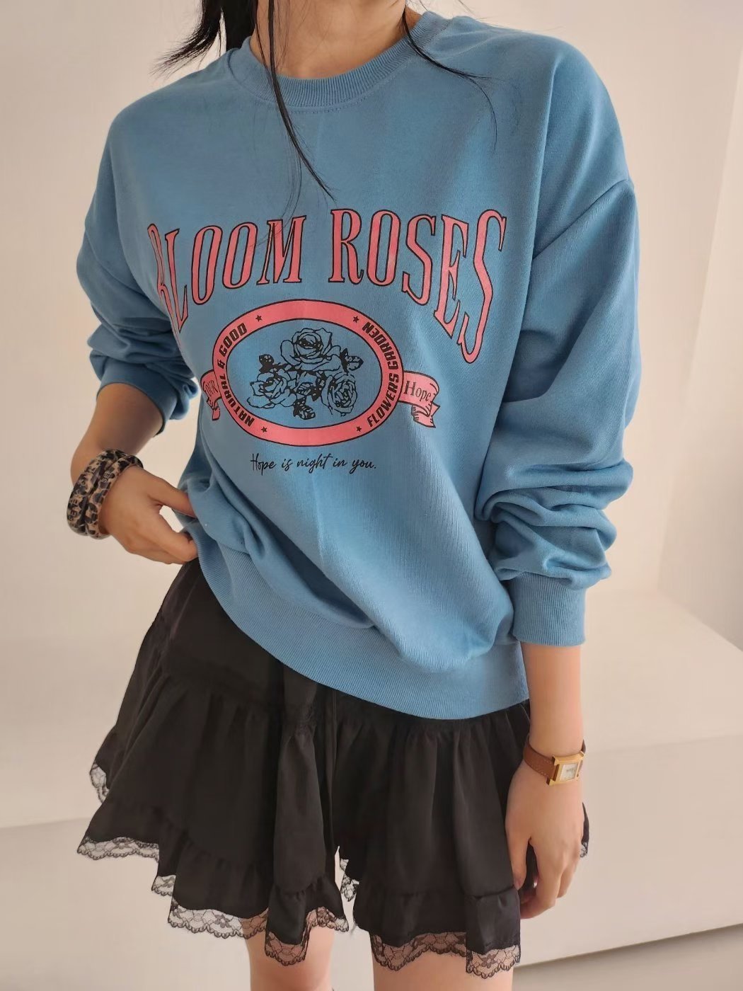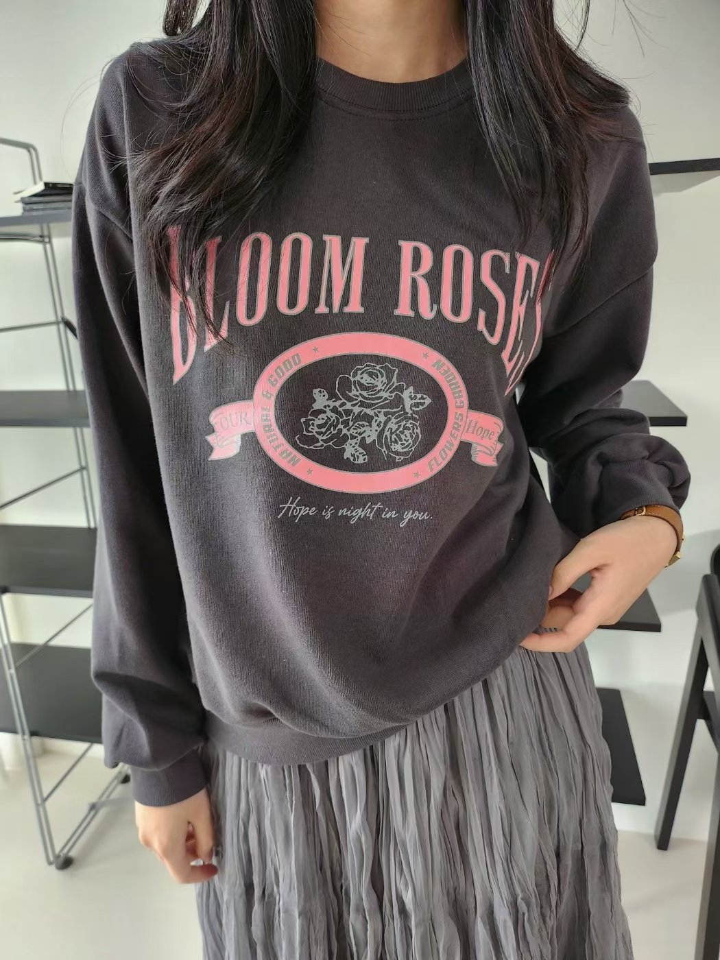 🇰🇷K5523 棉料印玫瑰花長袖tee (預訂款3-4星期)
