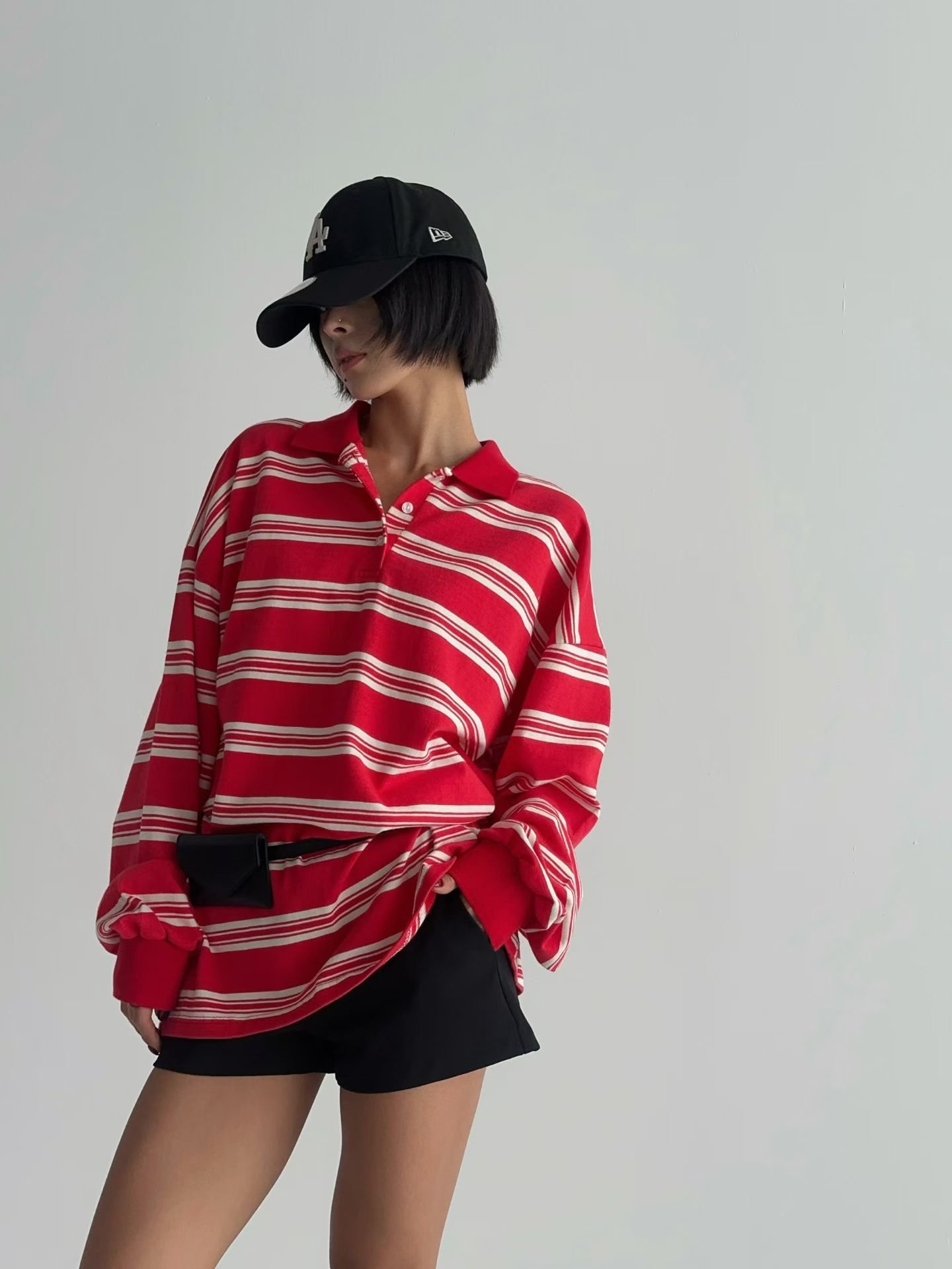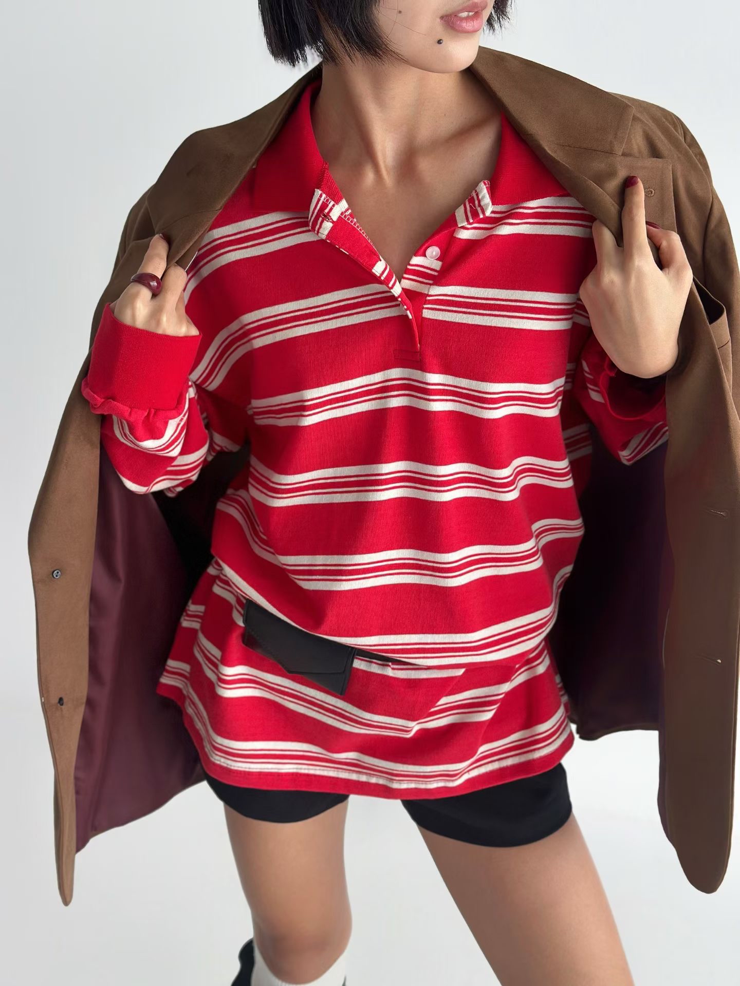 🇰🇷K5526 橫間polo領長袖tee (預訂款3-4星期)