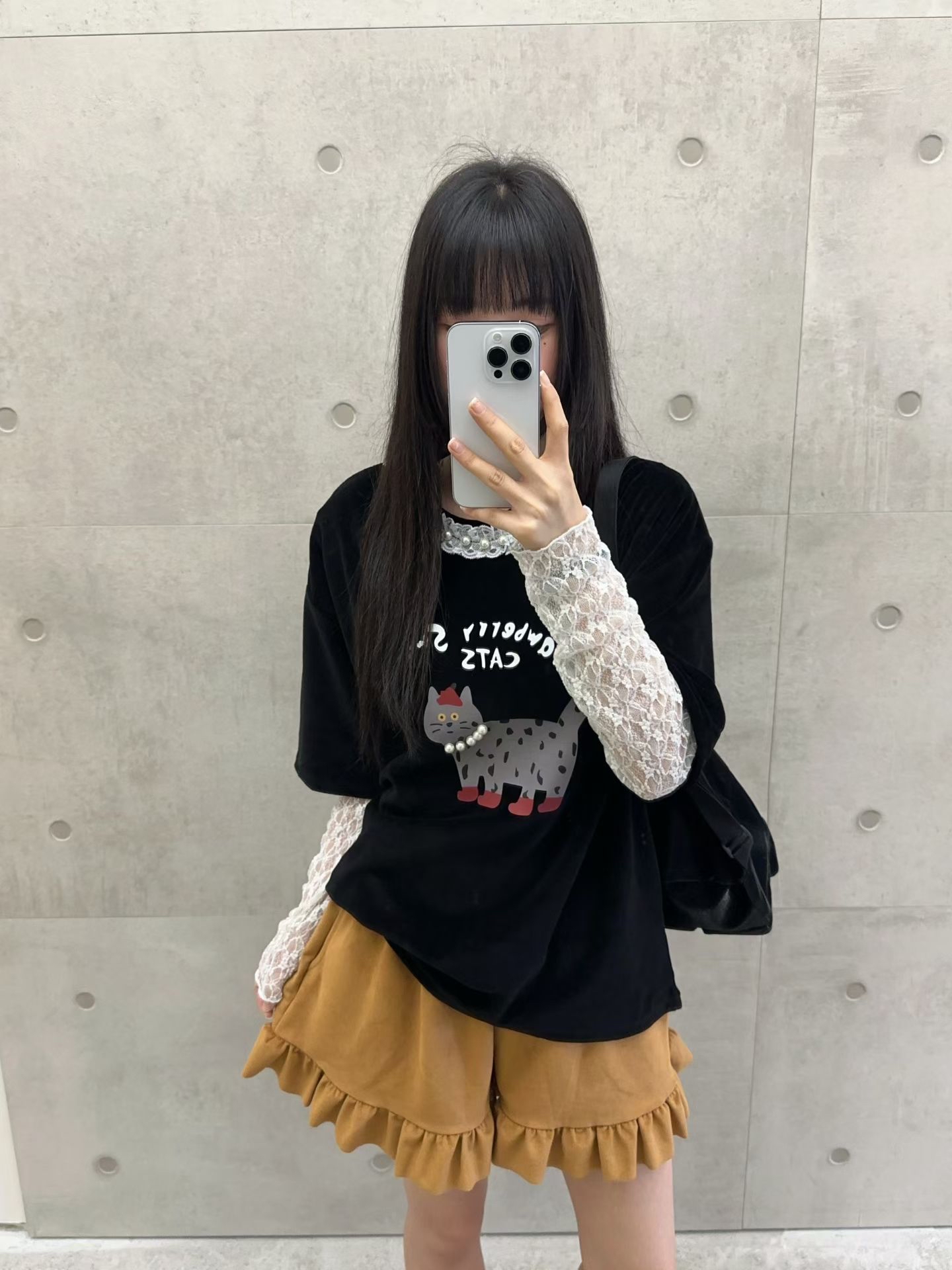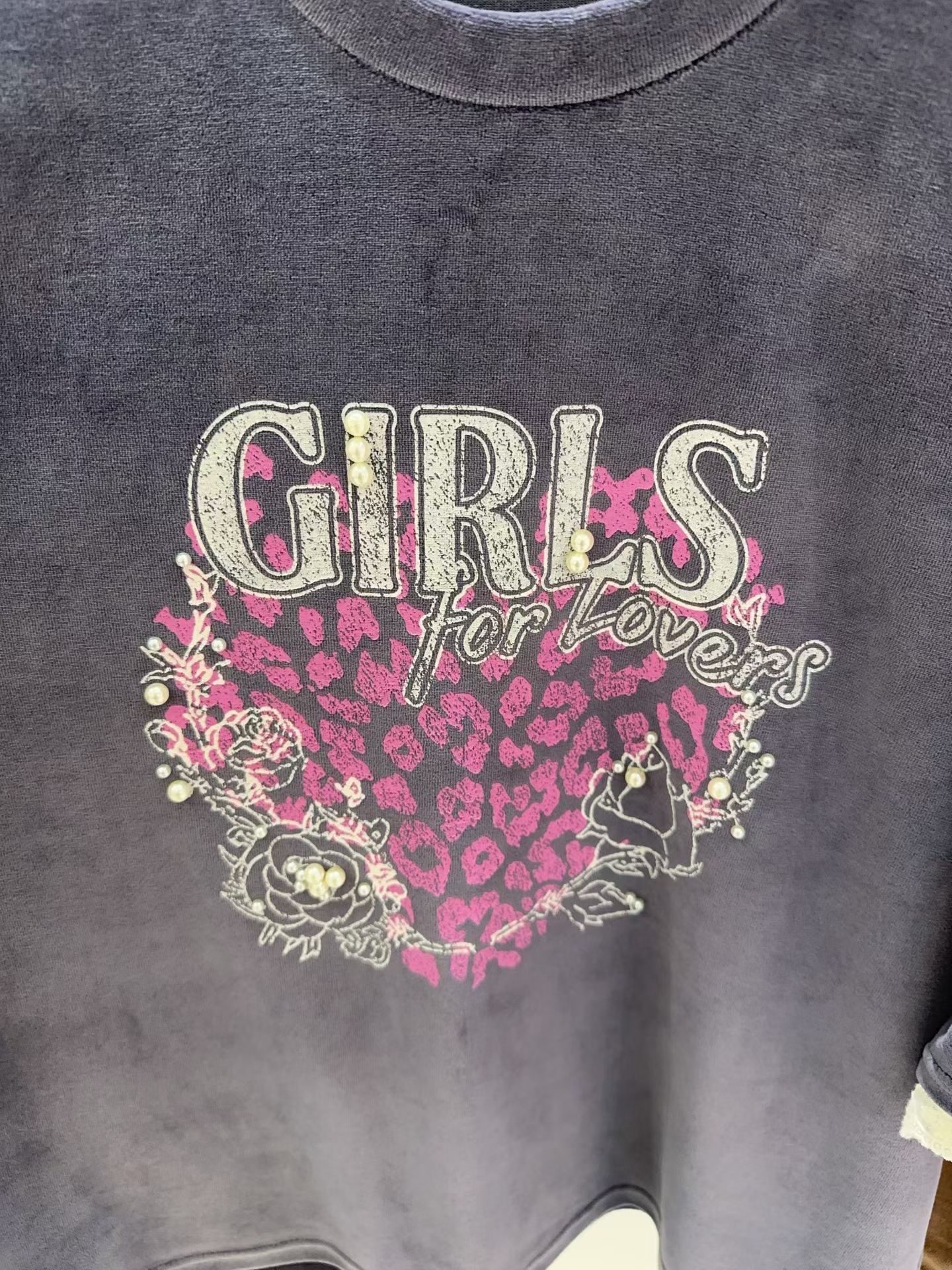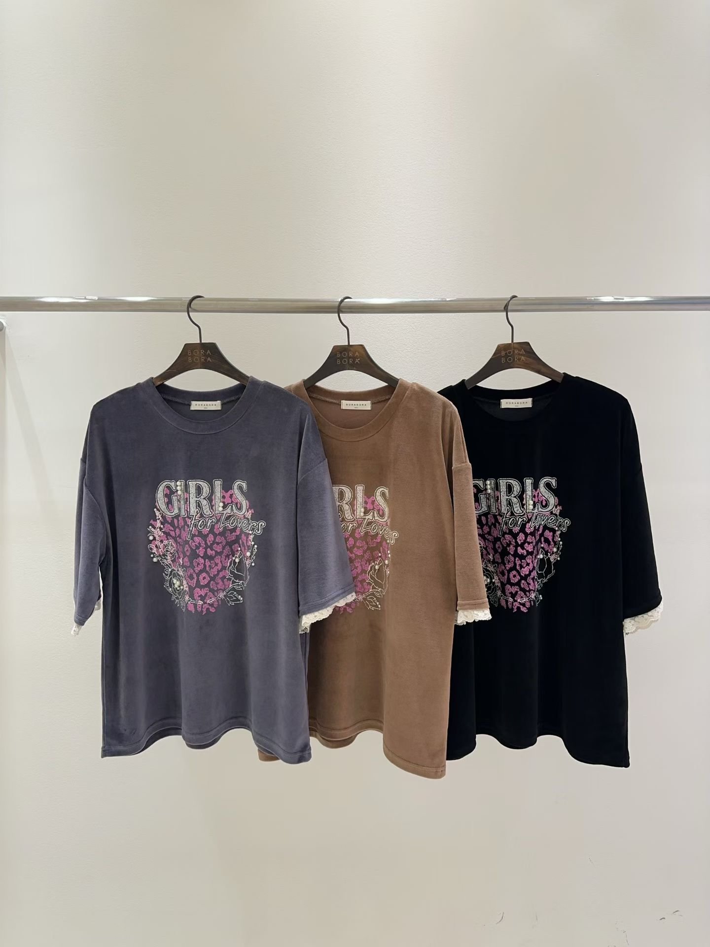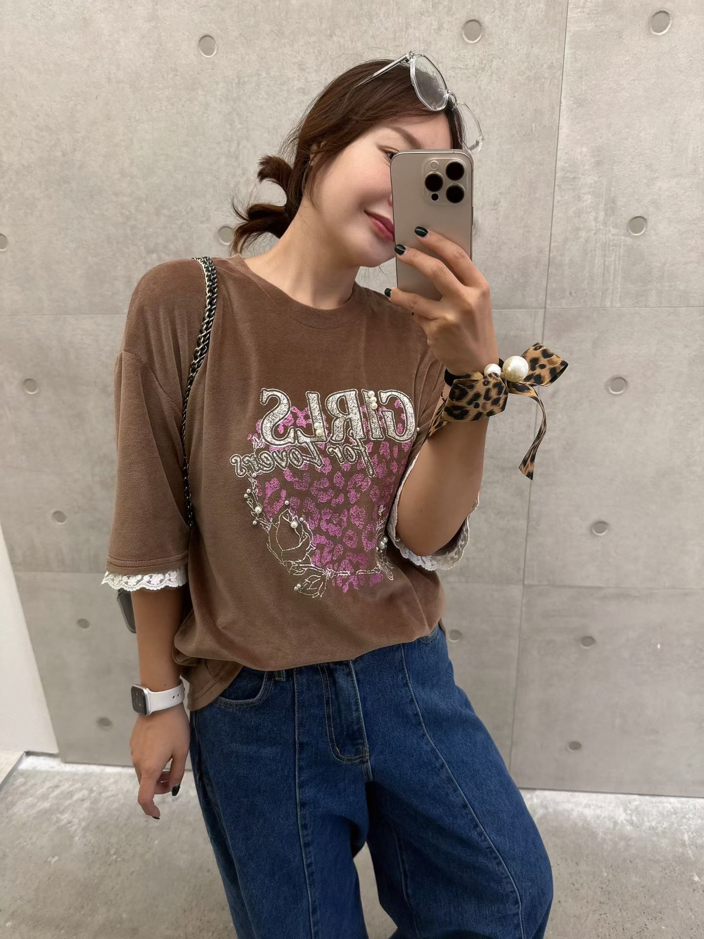 🇰🇷K5527 絲絨印豹紋心心花邊袖tee (預訂款3-4星期)