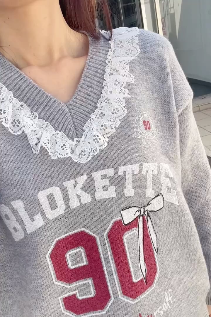 K5532 Lace邊V領針織top